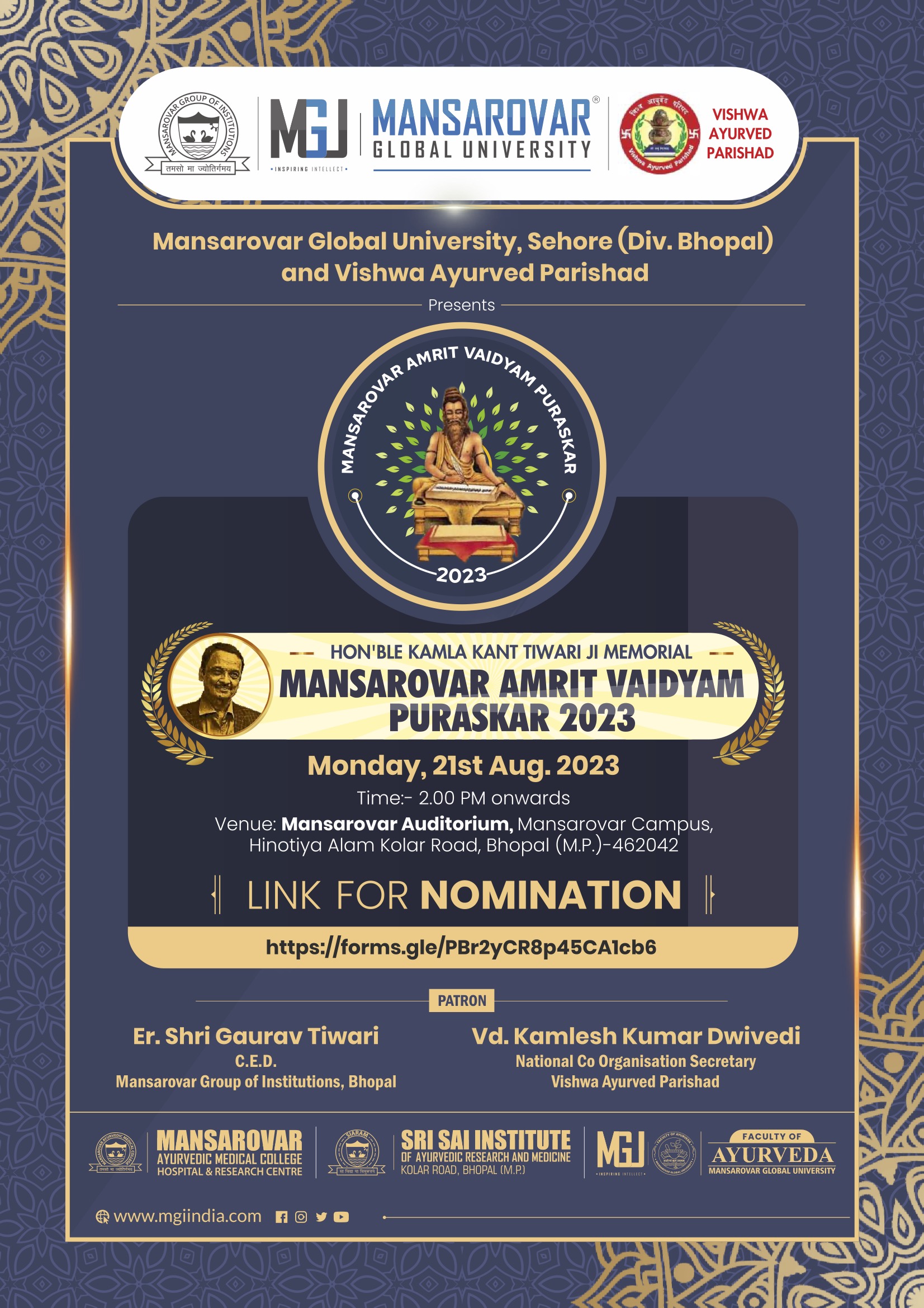 Posted By:- Mansarovar Global University, Sehore (Div. Bhopal) and Vishwa Ayurved Parishad